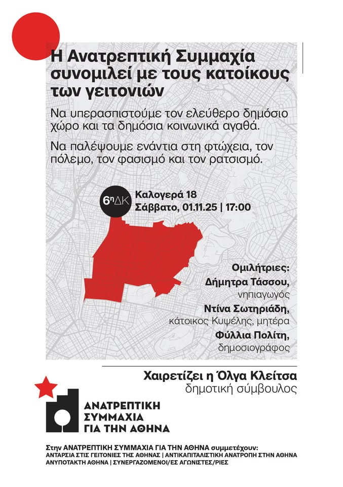 Ανοιχτή εκδήλωση-συζήτηση της Ανατρεπτικής Συμμαχίας για την Αθήνα στην 6η Δημοτική Κοινότητα