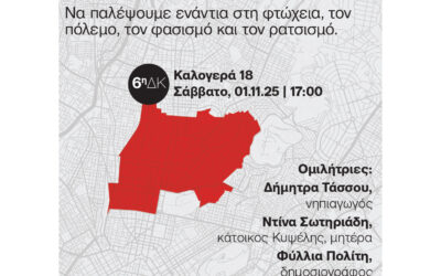 Read moreΗ Ανατρεπτική Συμμαχία για την Αθήνα της 6ης Δημοτικής Κοινότητας διοργανώνει το Σάββατο 1 Νοεμβρίου στις 17:00 (χώρος ΟΠΑΝΔΑ, Καλογερά […]